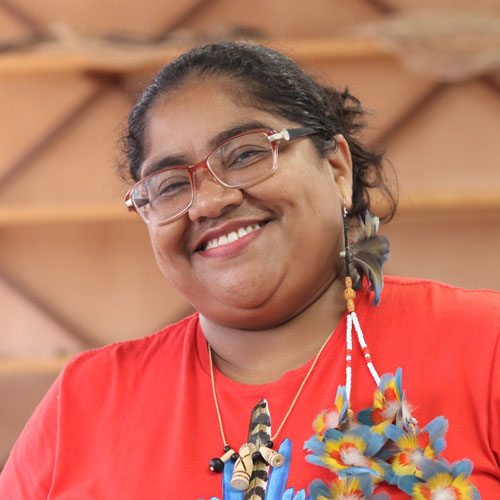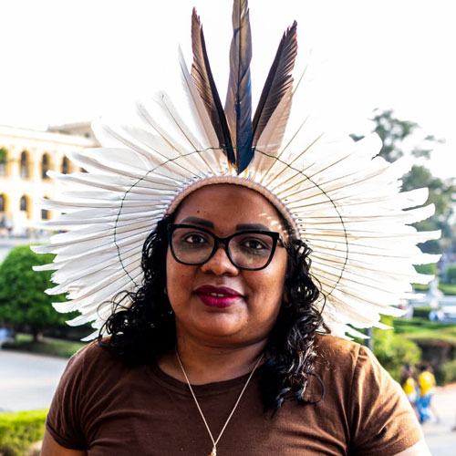 Paulista, artesã e palestrante sobre a cultura Pankararu. Secretária da SOS Comunidade Indígena Pankararu, atua na educação, cultura e saúde, organiza o Encontro Anual do povo Pankararu e participa de oficinas e eventos culturais urbanos.