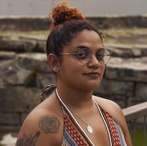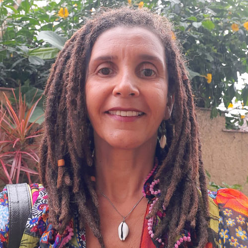 É um broto da nação Kariri na cidade do Rio de Janeiro. Professora de artes na SME-RJ desde 2012, integra a Gerência de Relações Étnico-Raciais. Doutora e mestra em educação pelo ProPED/Uerj e graduada em história da arte pela Uerj. Pesquisa o ensino da arte, cotidianos e educação como tecnologias ancestrais de fortalecimento.