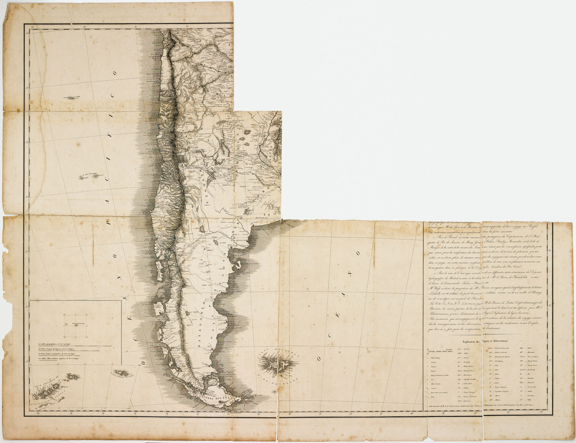 Fragmentos da segunda folha do “General-Charte von Süd-America. Carte générale de L’Amérique Méridionale en deux grandes feuilles, D’Après les observations et les cartes spéciales, rapportées du Voyage dans l’intérieur du Brésil pendant les années 1817-18