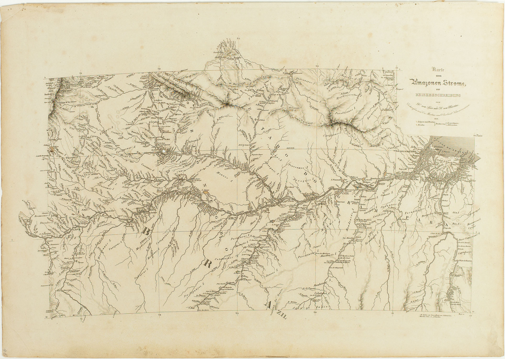 Karte vom Amazonen Strome, zur Reisebeschreibung von Dr. von Spix und Dr. v. Martius. Entworfen von C. v. Martius und Oberlieut. Schwarzmann. 1831